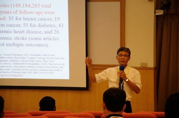 本次研討會配合教育部體育署推動新南向政策-學校體育交流計畫,邀請國際學者包括馬來西亞籍國際運動醫學科學委員會執行長Dr.Lee 、泰國國家體育訓練中心運動科學委員會主席Dr. Sirirat,以及菲律賓、印度和國內運動醫學、運動健康促進領域等10名學者,以「運動健康促進與疾病預防」相關專題進行演講與討論。