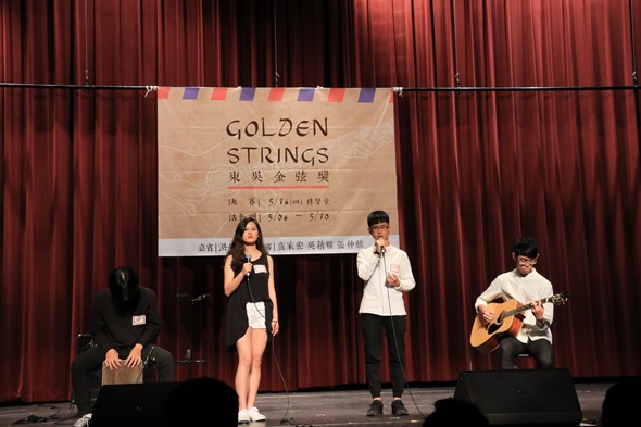 第9屆「東吳金弦獎」,5月16日在外雙溪校區傳賢堂盛大開唱。此為本校吉他社所舉辦,以吉他彈唱為主之比賽,參賽者為全國大專院校學生。比賽分成四個組別:鋼弦演奏組、獨唱組、團體組以及創作組,集結各個大專院校的高手相互切磋,共有70組隊伍參賽,一同展現精湛的實力,在舞台上揮灑出優美的音符。不只參賽者實力堅強,評審陣容亦頗為亮眼,有Woody-Woody樂團團員張仲麟、台灣創作女歌手兼木吉他手吳蓓雅、華人指彈大師盧家宏等專業音樂人擔任決賽評審。