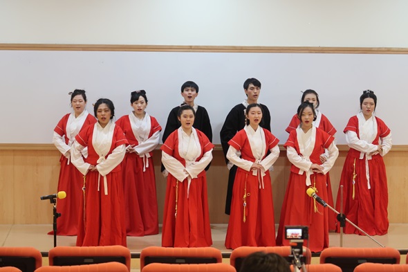 停雲詩社此次準備了〈望海潮〉(柳永)、〈破陣子〉(辛棄疾)、〈臨江仙〉》(蘇軾)等經典曲目,在慢詞長調、柔聲鶯語中,引領現場聽眾進入千年前詩人的作品意境中,感受詩詞帶來的感動與震撼。隨後,師大沐風詩詞吟誦隊、淡江大學驚聲古典詩社也分別進行吟唱表演,各具風格,婉轉動聽。
