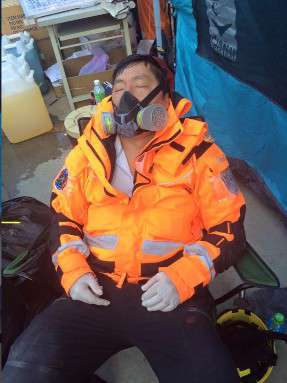 「這裡挖到棉被、這裡濕濕的,裡面應該有人!」憑著以往參與國內外重大災害救援經驗,本校語言中心專員王治文擔任義消多年,敏銳的在這次台南震災現場搜救。