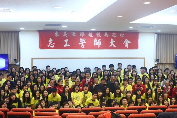 東吳國際超級馬拉松即將在這周末登場,12月11日晚間率先在外雙溪校區普仁堂舉行超馬志工誓師大會。300位志工齊聚一堂,一起為東吳超馬宣誓,凝聚服務熱忱。