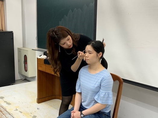 要如何給人好的第一印象?「人在江湖,面子要有!」不管是上課、工作、面試,不同的場合有不同的禮儀,清爽的妝容跟簡易的保養能讓自己的氣色更加分,不但能增加別人對自己第一印象的好感,還可以在工作時使長官更加器重。本校群美中心以「社團新8課」為主題,邀請8位畢業學長姐回校開授2小時的專業課程,分別有經營、舞台、美妝、情緒、主持、時間、活動、簡報等面向,在吸收新知之餘也能增加「軟實力」。美妝課程邀請袁珮倫學姐分享她的化妝秘訣,讓學生能在對的場合有合宜的妝容,不僅讓自己擁有一個自信的外表,更是體現對他人的尊重。