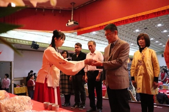 活動期間,陸生、僑生、外籍生們精心準備了各式各樣的表演,勁歌熱舞、古典舞蹈、長笛吉他二重奏及粵語歌曲串燒等節目接連上陣,場面既溫馨又熱鬧。席間,潘校長逐桌與學生們舉杯慶祝春節的到來,並祝福在場每一位學生,在新的一年都能書寫出新的人生篇章。最後,師長們與全體境外生合照,祭祖活動圓滿落幕,期待新年新氣象,每位境外生能在學業上繼續精進。