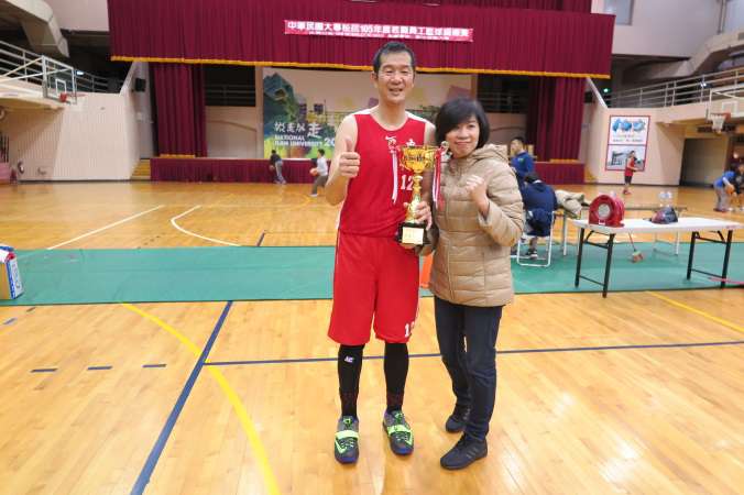 大專教職員籃球賽於105年1月27至30日在宜蘭大學舉行,在體育室東方介德主任帶領本校教職員籃球隊及吳慧芳教練運籌帷幄下,由教資中心王志傑主任擔綱隊長率全體隊員:政治系吳志中老師、盛治仁老師,英文系戚建華老師,歷史系楊俊峰老師,體育室黃奕仁老師、鄒桂禎老師,總務處張榮貴技正、華語中心王鵬順專員、圖書館支嘉立專員及教務行政組廖瑋麗約聘組員等12位好手,團結一致,連續過關斬將,以全勝佳績勇奪教職員籃球錦標賽丙組冠軍。