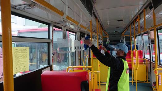 依台北市公共運輸處規定,公車內應每8小時應消毒一次,中興巴士557公車已配合本校需求於每4小時進行內部消毒,但因師生搭乘557公車頻繁且人數密集,而中興巴士亦無人力增加消毒之頻率,故自3月23日起由本校環安衛暨事務組每日派員,從7:00至17:00駐點在557公車士林總站進行車內消毒。工作人員會在公車出車前完成車廂內座椅、扶手、扶桿、拉環、下車鈴及刷卡機周邊等接觸面之消毒,並記錄車號、消毒時間,除方便查考外,增加消毒頻率以降低感染機會,也讓師生安心搭乘。