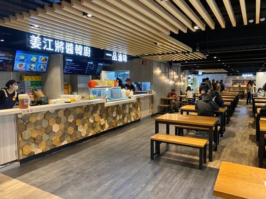 透過專業餐飲統包商規劃,共引進9家美味與衛生品質兼具之商家,包含1樓的7-11超商、海音咖啡、沐達早餐,2樓的奕香咖啡、姜江將醬韓廚、一品滷味、甜心水果,而多爬幾階樓梯到3樓,就有菜色豐盛的御喜自助餐和QQ麵麵食館。