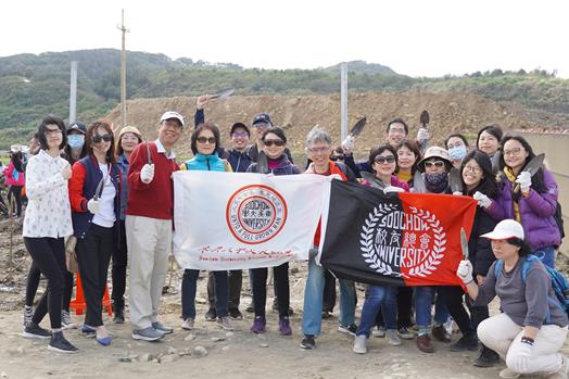109年2月23日上午,校友總會劉詩聖總顧問帶領心繫環境保護的學長姐們,一同來到新北市林口嘉寶沙灘,母校社會資源處校友資拓中心莊琬琳主任也帶領同仁熱情出席。本次公益日活動,東吳校友們總共認養了219棵小樹!總會劉詩聖總顧問上台致詞時表示,劉吉人理事長深感環境保育及永續發展是刻不容緩的問題,所以實踐「愛心一加一」的理念,比照校友們認養的小樹數量,理事長也認養相同的棵數,因此東吳校友們將在這片土地植下438棵小小生命!到場參與的校友們莫不深感振奮。