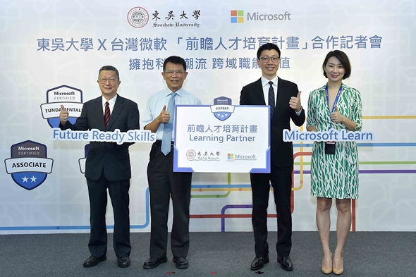 潘維大校長認為,微軟具有虛實整合的科技實力與廣泛的企業應用,而台灣微軟Future Ready Skills前瞻人才培育計畫,將最新的Azure雲端與AI技術帶進東吳,永遠在線Microsoft Learn 學習平台提供與時俱進的線上學習資源,涵蓋了業界熱門IT科技職務的基礎、進階、專業各階段的認證課程的學習,讓文、法、商見長的東吳大學學生可依其專業領域需求,獲得國際級的專業能力證明與信賴。此外,台灣微軟前瞻人才培育計畫為本校提供種子教師培訓課程、協助學校建置認證中心考場,「課程→種子教師培訓→考證中心」一條龍的教育合作方案,勢必成為未來高等教育專業認證的發展趨勢,東吳已經領先全大專院校超前佈署。