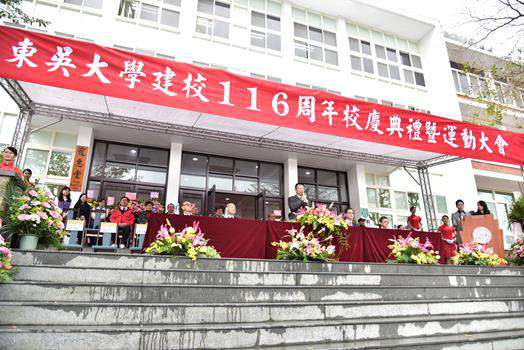 東吳大學建校116周年校慶暨運動大會,於3月12日(六)在外雙溪校區舉行校慶揭幕。校長潘維大表示:「東吳大學已經116歲了,期待在全體師生和校友的努力下,能再創東吳下一個高峰」。各單位精彩活動除了體育室邀請到前中信兄弟總教練謝長亨親身指導棒球擲準比賽,社會資源處更邀請曾淑勤校友為母校獻唱。而學生會今年以皮卡丘為主題,獻出超萌系開場舞,以青春活力的元素和師生一同歡慶東吳大學生日!