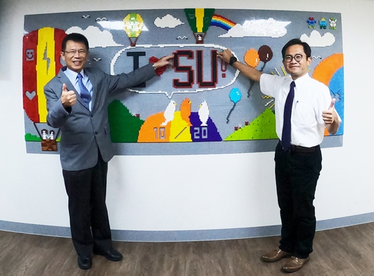 啟用儀式是在地下室積木牆前,由潘維大校長及李坤璋學務長,為SU(東吳校名英文縮寫),拼上紅、黑校色色塊後,所完成的一幅美麗風景。此次構圖是由校友所設計製作,由幼鳥象徵學生心懷東吳的畫面,搭配熱氣球代表夢想升空的祝福寓意。未來,積木區將開放提供社團同學創作,是一個可充分揮灑創意與增添空間美學的角落。
