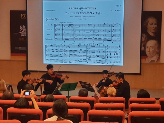 隨後,由音樂系彭廣林主任帶領四名音樂系同學演奏經典的貝多芬四重奏作品,在不斷交替重疊的動人旋律中,讓人感受到古典音樂結構之美。緊接著則是哲學系王志輝老師以「康德與啟蒙精神」為主題講述啟蒙運動所代表的追求知識、科學的精神,及主張獨立思考的理念。