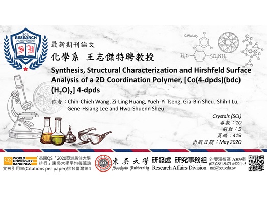作者:Chih-Chieh Wang, Zi-Ling Huang, Yueh-Yi Tseng, Gia-Bin Sheu, Shih-I Lu ,Gene-Hsiang Lee and Hwo-Shuenn Sheu