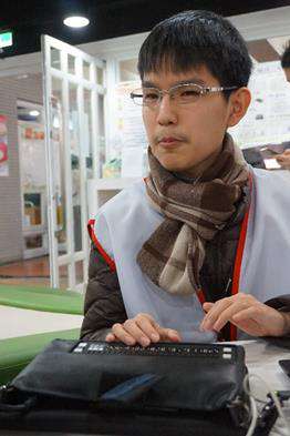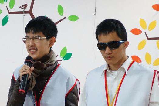 十點整,「表演區」的身障生表演在校園熱鬧非凡的背景聲中展開,第一位表演者是中文系全盲生沈柏宏帶來的「蒲公英的約定」和「希望的種子」,隨後他與法律系視障生王士朋一起合唱「風中的羽翼」。歌詞中的「黑夜過後太陽就要升起,暴風雨過後也就會天晴」就像他們堅韌的生命,奮力地在世上努力著。透過這些表演,健諮中心希望喚起學生對生命及關懷議題的重視。