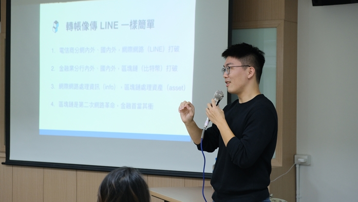 許明恩提到,很多人都聽過區塊鏈,但並沒有真正的擁有過加密貨幣,因此在講座中,特別發給每個人以太幣,並教導大家怎麼使用電子錢包,透過實際操作更瞭解加密貨幣。他也說到,區塊鏈的技術,將會讓社會創造新的信任,不同於以往以政府為中心的信任機制,而整體的產業也會因此大洗牌。
