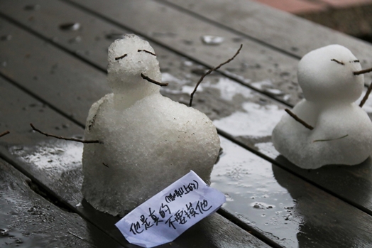 受寒流影響,全臺氣溫驟降,連陽明山也在1月8日凌晨下起皚皚白雪,而本校外雙溪校區,竟從早上開始出現了一隻超萌小訪客,吸引眾人圍觀拍照,截至下午5點為止,甚至有越來越多的趨勢,一隻隻高矮胖瘦、形狀各異的小雪人,成群結隊地在八角亭旁排排站好,大家紛紛直呼「好想帶回家」、「上山追雪吧」。