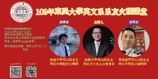 英文系火種講堂將繼續邀請優秀系友返校講述職涯發展經驗,歡迎正在思考未來職涯方向的同學們與畢業系友參加。