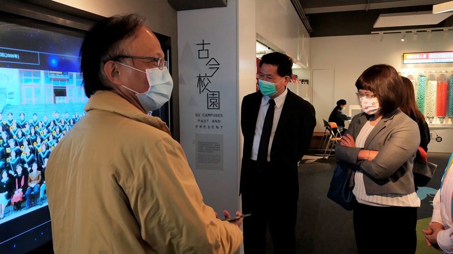 簽約儀式後,安排錦和高中與會師長參觀本校懷恩數位校史館及圖書館3D攝影棚、漫讀區。張校長為本校中文系畢業校友,在校史館互動式螢幕中,查閱到大學畢業紀念冊照片,憶起求學時期點滴倍覺感動。師長們一行對於學校優雅的校園環境、豐富的文化底蘊以及完善的學習環境,均留下深刻印象,也為本次簽約活動劃下完美句點。