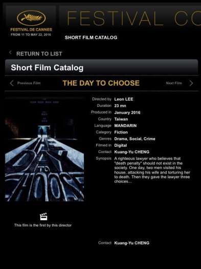 沒有電影科系等強力後盾,沒有電影專業等課程學習,本校華語教學中心副主任鄭匡宇監製、德文系李永為同學導演的短片《審判》(The Day to Choose),一舉躍上今年國際電影舞台,不僅入選第69屆坎城影展”短片角落(Short Film Corner)”、入圍法國尼斯影展最佳外語短片及東京Lift-Off電影節,更榮獲2016年美國世界民族電影節的最佳劇情電影短片獎(The Best Drama Short Film)。