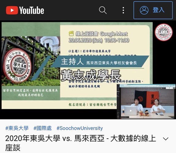自2019年Covid-19疫情爆發以來,學生全球移動力遭遇很大的限制,本校境外招生及國際交流也受到嚴重衝擊,國際事務中心積極突破困境,讓暫時無法來台的海外學子,依然可以獲得東吳國際招生的訊息。除積極參與各線上教育展進行招生宣講,也透過YouTube、Facebook、Instagram等社群媒體增進與青年學子互動,與在學境外生攜手合作拍攝中文及英文短片,分享校園生活。更感謝香港、馬來西亞、南加州校友會等學長姐愛護母校,在當地參加實體招生說明會,吸引眾多莘莘學子認識東吳,進而選擇就讀。