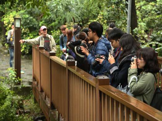 當日莊老師帶領我們走踏北投溫泉街、溫泉博物館、地熱谷、北投文物館、北投百年公園、台北市立圖書館-北投分館、普濟寺等地,除了講授攝影技巧與拍攝最佳角度外,對當地文史也如數家珍,娓娓道來。另,特別介紹當地銅板美食如北投市場內蔡元益紅茶等,更是不容錯過。