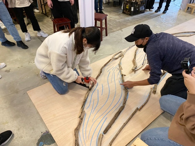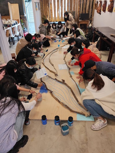 學務處系列活動的開端是北海岸淨灘,面對一望無際的海灘上散布大大小小的廢棄物,學生們絲毫不畏懼,愈撿愈起勁,而這些被拾起的海洋垃圾,會被妥善清理、加工製作成裝置藝術並裝飾於校園中,作品從設計發想、素材拼裝、顏料上色等皆由本校師生參與、動手實作,過程中先是互相合作組裝漂流木,而後一筆一畫刷上濃淡色彩,藉由群育及美育的融合,啟發學生探索人際與自然關係的思考,亦培養學生對於美的認識與創造力。