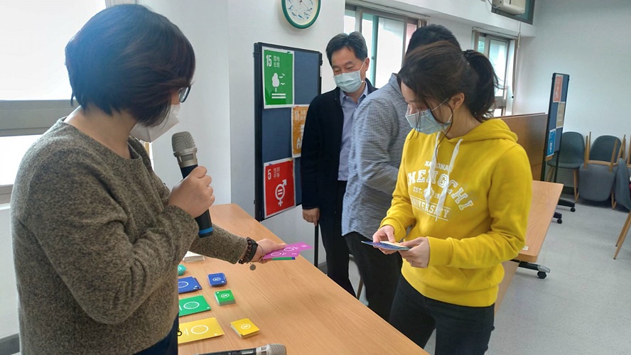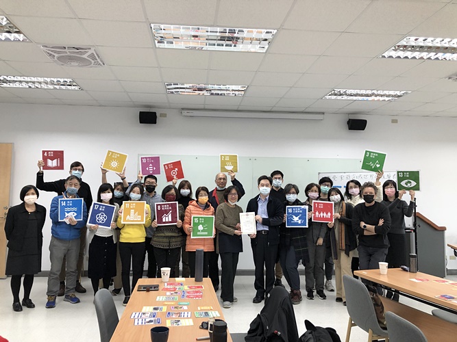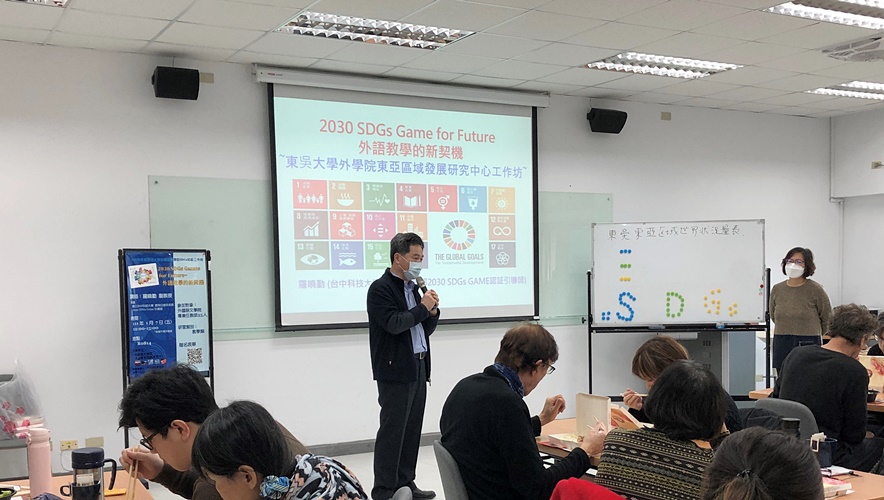 外國語文學院暨東亞區域發展研究中心於111年1月7日在外語學院會議室辦理教師知能工作坊,以「2030 SDGs Games for Future~外語教學新契機」為主題,邀請國立台中科技大學應用日語系教授、2030 SDGs Games引導師羅曉勤擔任主講者,以活潑有趣的SDGs桌遊,帶領23位老師們共同學習並認識SDGs議題的重要性。