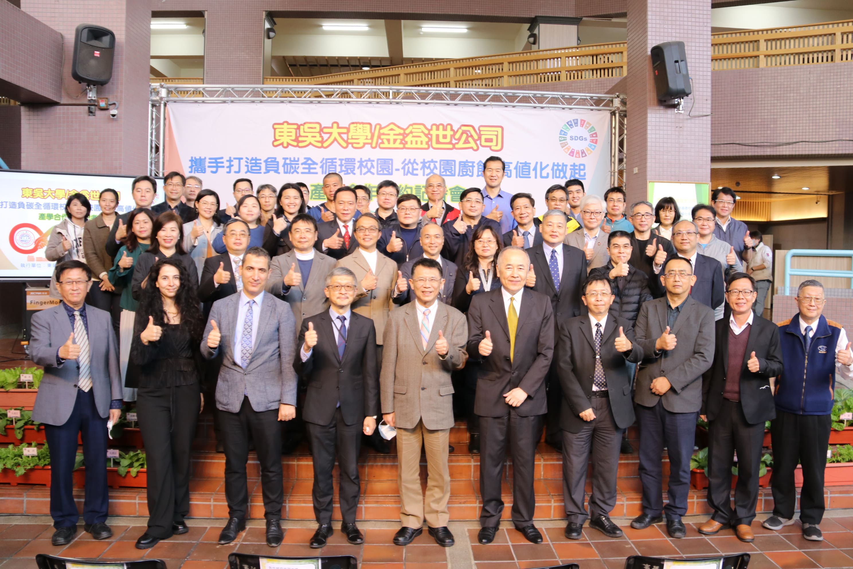 實踐聯合國永續發展目標SDGs,東吳把校園廚餘變綠金!東吳大學今(2)日與金益世公司簽訂「打造負碳全循環校園-從校園廚餘高值化做起」合作計畫,進行產學合作。東吳大學每天產生的廚餘,經過固態發酵機,短短24小時內就能變成「益菌土」,50公斤的廚餘約可轉換成無臭的5公斤土壤,不但肥沃了東吳的「健康農場」,益菌土甚至能搶救老樹,遏止俗稱樹癌的褐根病擴散,技術領先全台!本校更搭配環保永續相關通識課,做到高等教育研究學府為「環境永續、淨零碳排」應盡之社會責任,這套模式未來還可能輸出到農業大國土耳其。