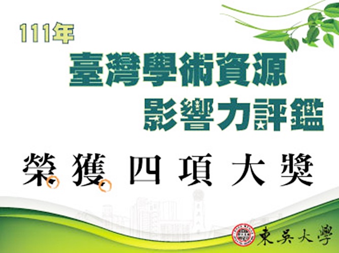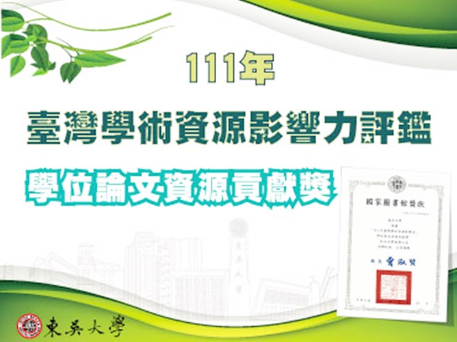 國家圖書館對於保存文化,弘揚學術研究之願景,亦是本校致力的目標,因此長期以來致力落實學位授予法之相關規定,鼓勵學位論文公開發表,藉以呈現本校學術研究成果。此次於電子全文授權數、被下載數及被下載率三項評比皆入圍私立大學組前五名,並且於「臺灣博碩士論文知識加值系統」內各分項排名積分總分最高之大學校院中,榮獲私立大學組第四名,顯見本校研究成果備受學術界的認可。而本校《東吳日語教育學報》及《東吳法律學報》分別奪得語言學類及法律學類期刊即時傳播獎,其學術研究力近五年影響係數高居全臺前五,足見本校學術水準在研究領域中具有指標性的重要意義。