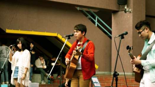 動聽的歌聲伴著鏗鏘有力的吉他刷弦聲從望星廣場散播開來,3月30日中午時分環繞整棟綜合大樓,吸引不少下課的同學倚靠欄杆駐足聆聽,更有人帶著買好的午餐,早早在望星廣場卡位準備欣賞新生代樂團Control T的表演。