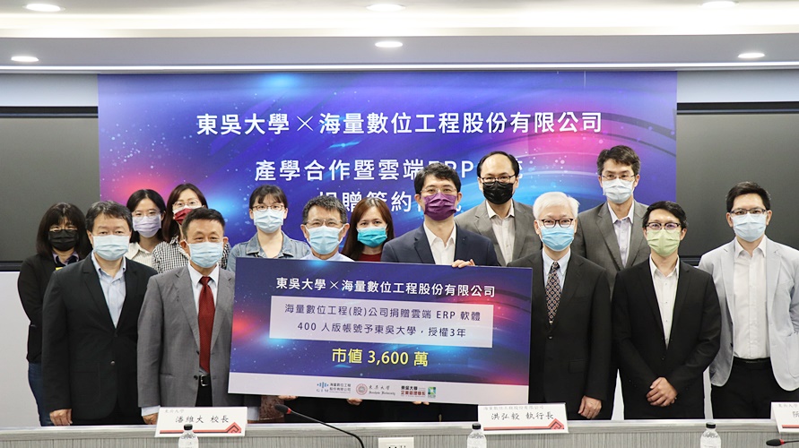 海量數位工程洪弘毅執行長則表示,海量數位工程多年來自行研發包括:ERP系統、無人搬運車、自動光學檢測等系統,協助企業數位轉型之服務。而ERP系統因應現在國際環境的變化,需要更開放的供應鏈及客服架構,企業轉型需要大量人才投入,期望藉由本次的產學合作做為開端,除了導入ERP系統之外,希望未來在工業物聯網、二代轉型、數位轉型、機器人、AI等領域,皆能擴大與東吳大學的緊密合作。