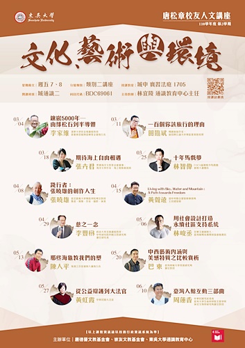 致力於推廣文化、藝術、教育以啟發學生跨領域知識探索的「唐松章校友人文講座」,由本校校友總會榮譽理事長,同時為崇友實業創辦人的唐松章先生(會計系44級)及崇友文教基金會執行長唐秋鈴女士共同策辦,與本校通識教育中心開設通識課程,邀請藝術、文化、環境等各領域專家經驗分享,多樣化的課程拓展學生對不同領域事物的視野。111年5月13日舉行「那些海龜教我們的塑」線上講座,邀請海湧工作室創辦人兼執行長陳人平,分享自己實踐海洋環境行動中的經驗,藉此讓同學了解海洋問題,及知曉如何為環境做出改變。