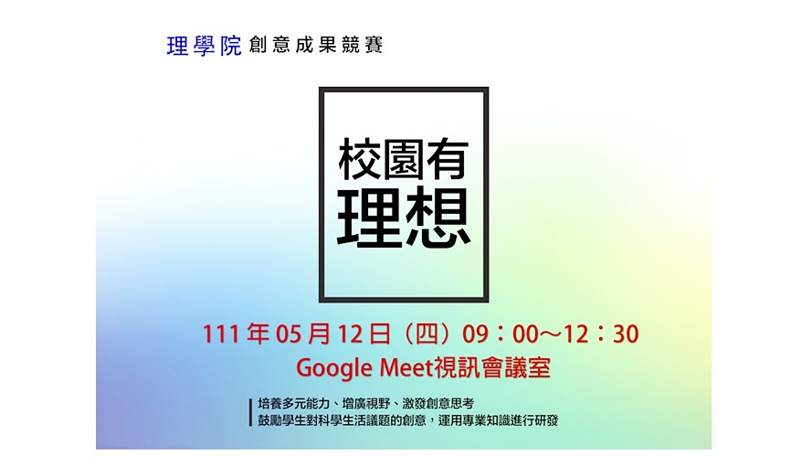 面對全球暖化、高齡與少子化、智慧生活等趨勢,世界各國競相發展綠色能源、老人照護、車用電子電機、3C等電子、電機光電及資訊產業。為鼓勵理學院學生在學習專業知識外,能多接觸當前社會趨勢與相關議題,於111年5月12日舉行第8屆校園有「理」想創意成果競賽,學生透過團隊合作,運用思考力及創造力,展現具備專業與創意的作品。