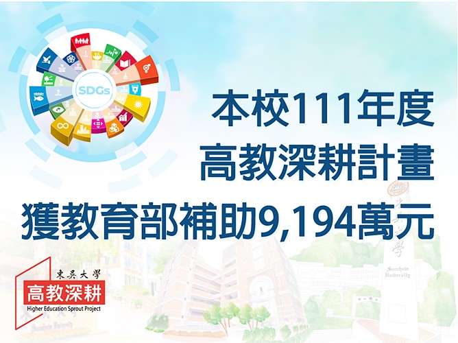 教育部日前公布111年高等教育深耕計畫審查結果,本校獲得核定9,194萬6,716元補助,包含教學研究特色發展、大學社會責任實踐、完善就學協助、原民生輔導、公共性檢核等計畫項目,辦學績效深獲肯定。