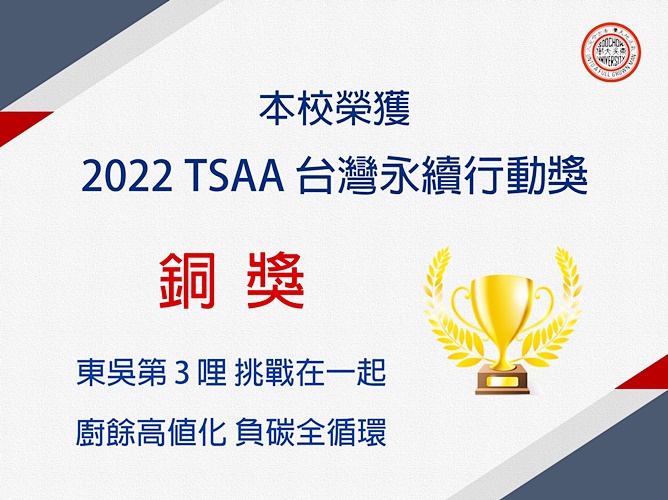 東吳永續 再受肯定!榮獲「2022 TSAA台灣永續行動獎」銅獎