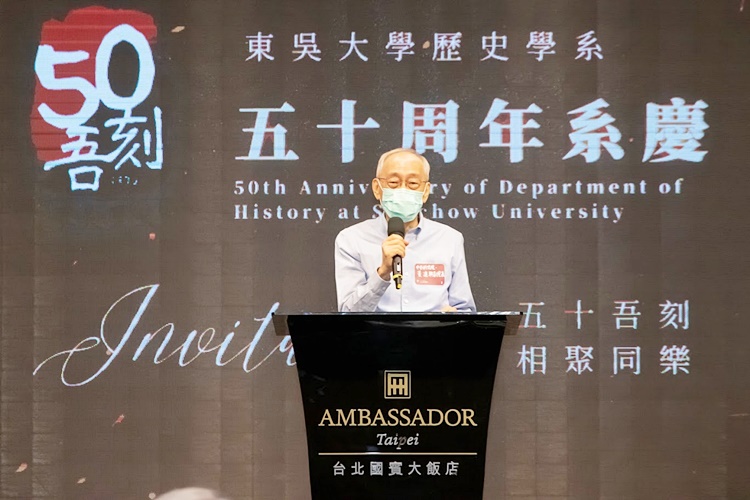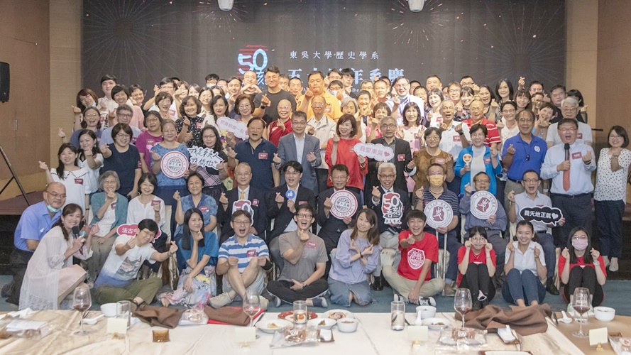 本校歷史學系成立於1972年,今年歡慶50周年,為感謝社會各界及師長系友們對歷史學系的支持,歷史學系及歷史學系系友會特別於111年9月3日,假台北國賓大飯店盛大舉辦「50吾刻 相聚時刻—東吳大學歷史學系50周年系慶感恩餐會」。百餘位系友及專兼任退休師長不畏風雨前來,中央研究院廖俊智院長、中央研究院黃進興副院長、文化資產局陳濟民局長、教育部高教司朱俊彰司長等機關首長均應邀出席,本校潘維大校長、董保城副校長、人文社會學院米建國院長、王淑芳總務長、姚淑文社會資源長、校友總會劉詩聖顧問等亦親臨祝賀,場面熱鬧溫馨。