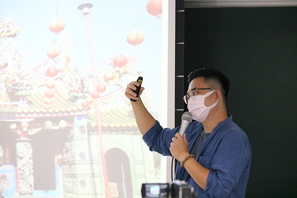 陳威豪老師也毫不藏私地分享剪黏作品的鑑賞方式,包含剪黏、泥塑及交趾陶三種工法,每種技術都是非常講究的,他以大廟屋脊上的大型剪黏舉例說明。儘管裝飾本身具有一定的重量,但倘若是好的作品則會呈現栩栩如生的,且幾乎看不見接著點,彷彿一體成形!話鋒一轉,陳威豪老師感慨時代變遷、匠師年齡斷層化,這項文化技藝正面臨傳承延續的嚴苛挑戰,陳威豪老師不願文化漸趨失傳沒落因此他致力推動剪黏技藝教學,並結合地方創生,讓年輕族群認識傳統技藝。