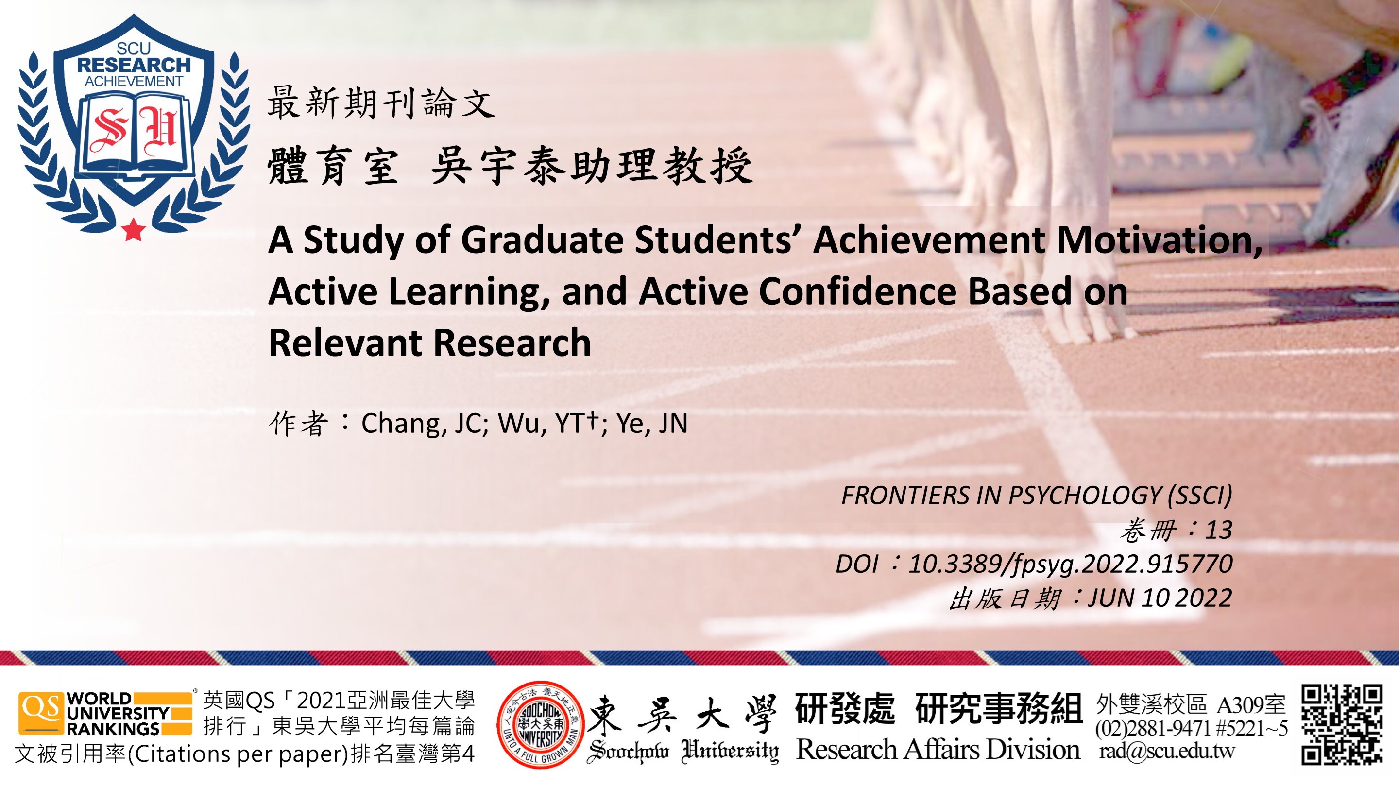 體育室吳宇泰助理教授發表最新期刊論文