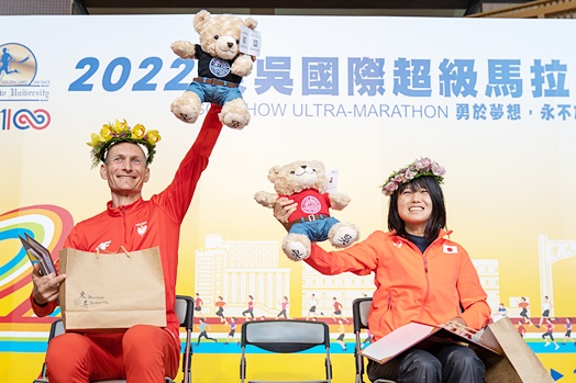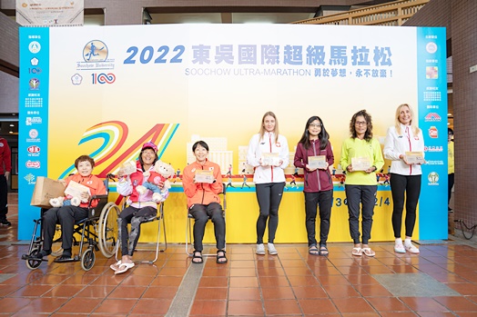 在群眾高聲歡呼及刺激的倒數計時中,歷時24小時的「2022東吳國際超級馬拉松」於12月4日上午九點圓滿落幕。本屆超馬除了是領先全球的碳中和賽事外,也創下空前紀錄,獲獎前六名中共有五位女性選手。來自波蘭的男子選手皮歐特羅斯基.安杰(PIOTROWSKI, Andrzej)以277.272公里的成績力抗群雄,拔得頭籌;日本選手仲田光穂(NAKATA, Miho)一路上遙遙領先,以256.024公里的成績收下第二名佳績;同樣來自日本的選手兼松藍子(KANEMATSU, Aiko)則以245.678公里榮獲第三名;台灣選手林冠汝(LIN, Kuan-Ju)以228.794公里獲得第四名;日本選手楠瀬祐子(KUSUNOSE, Yuko)以222.590公里獲得第五名;波蘭選手阿雷克珊德拉.尼溫絲卡(NIWINSKA, Aleksandra)以221.478公里獲得第六名。