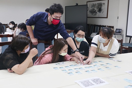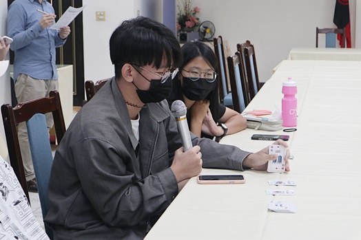 張講師最後透過社區綠能GO解構桌遊,進行分組玩桌遊活動,傳遞低碳永續的觀念,也藉由永續桌遊互動分組方式,小組成員有本校總務處、人事室等各單位職員與學生混合分組,使學生在參與活動過程中,亦透過職員的分享更加瞭解目前學校正在執行或努力的永續項目。