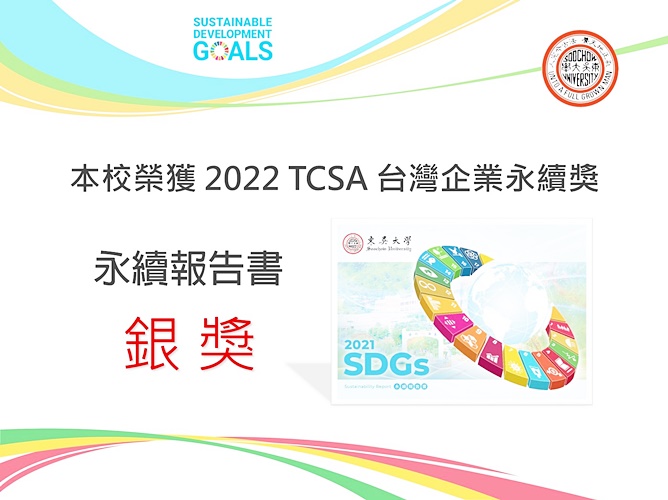 由財團法人台灣永續能源研究基金會所屬「台灣企業永續學院(Taiwan Academy of Corporate Sustainability)」主辦之「第15屆TCSA台灣企業永續獎」於日前揭曉獲獎榜單,本校參與永續報告書類評選,獲得銀獎之肯定。