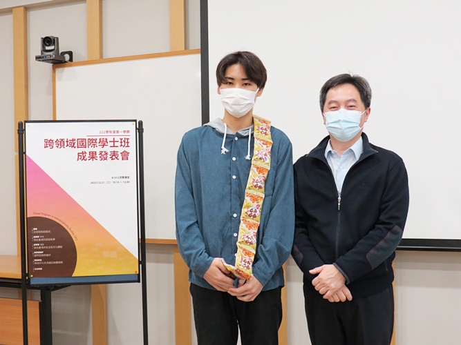 本校「跨領域國際學士班」(以下簡稱「國際班」)於111年秋季迎來首屆14名日本學生,在歷經了三個月的學習與輔導後,學生的華語口說能力與在地文化的感受能力都有了顯著的進步。基此,國際班王世和主任特與擔任授課的戴凱欣老師與楊雁婷老師共同籌劃「華語學習成果期末發表會」,邀請國際班學生分別以「在臺灣的旅遊故事」和「在臺灣的生活及文化體驗」為主題進行發表,並請「中級華語(一)」及「華語聽力與口說(一)」兩班修課的外國學生出席參與。