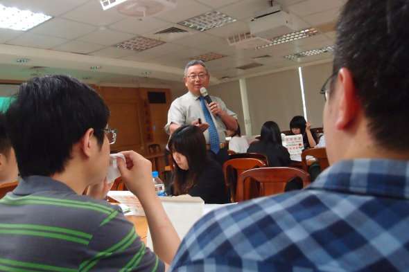 一開始,他便對同學拋出許多疑問「你是否朝著你期望的人生前進呢?」「你是否想改變這個環境呢?」「你是否接受人生就只能是如此?」他說,這些疑問其實都緊扣著接下來的主題,也就是你是否自由?對以上問題遲疑或是屈就的人,其實都不是真正的自由人,如此的人如何會是個有魅力的人呢?
