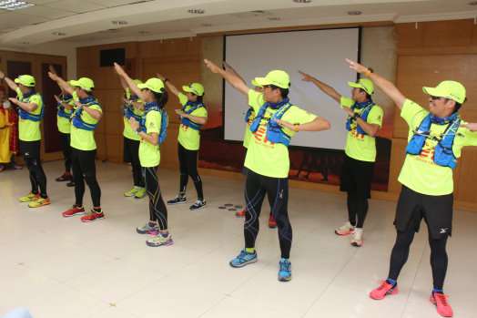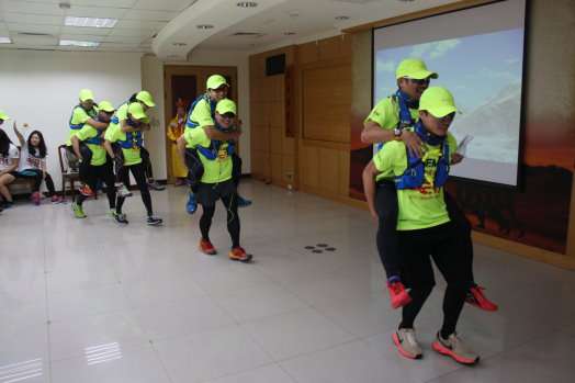 潘維大校長致詞時讚揚參賽者們的好體力及持續練跑的毅力,並表示對於此次參賽抱持極大信心,誓言跑出超越眾校的好成績。潘校長說:「東吳大學一直以全人教育為宗旨,除了課業之外,身心發展、人文思考、社會關懷也很重要。這次EMBA參與戈壁挑戰賽,是自我的超越、是毅力的展現、是體力的鍛鍊、也是社會的實踐,著實為學弟妹的好榜樣。」而參賽者們則以輕鬆、創意的行動劇,簡短演繹旅程的艱困,帶出玄奘之路的精神:「理想/行動/堅持」,並展現出平常紮實的訓練成果,不論是增加心肺練習、核心肌群訓練,還是強化大腿肌耐力,都難不倒這群企業菁英。在向前邁進的同時,也不忘負起社會責任,贈款漸凍人協會,鼓勵漸凍病友,即便身處絕境,仍能滿懷信心與希望,「堅持到底,永不放棄」,致力使這個社會共善、共好。