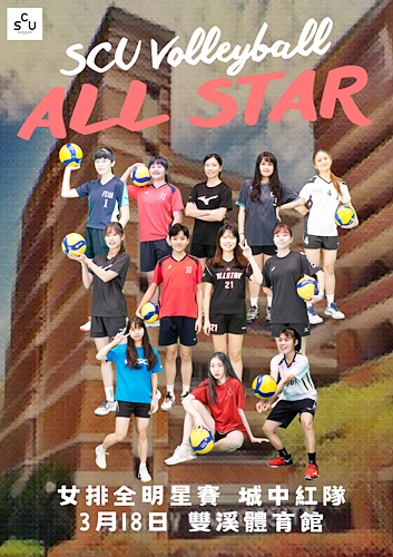 各項競賽更是運動會的重點,籃球、排球全明星賽選手是由全校學生票選,投票過程競爭激烈,各系優秀球員將代表外雙溪及城中校區一分高下,歡迎大家一起進場支持喜歡的明星球員及所屬校區隊伍。當日上午10時由籃球全明星賽打頭陣登場、13時排球全明星賽開打,快來一起用尖叫歡呼聲震破體育館吧!
