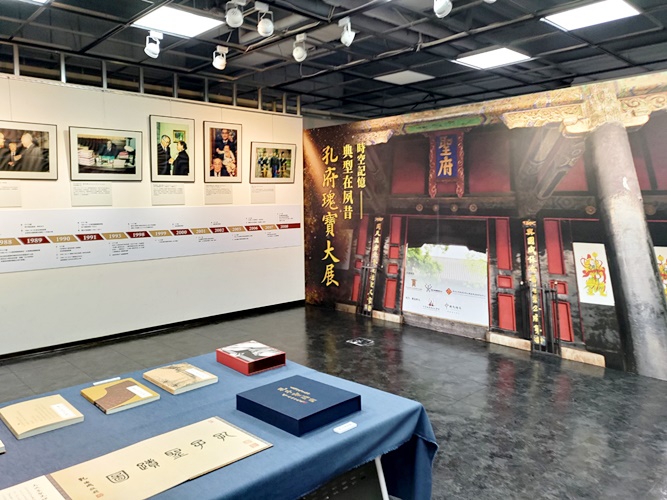開幕儀式結束後,中華無盡燈學會唐瑜凌創辦人為與會貴賓們導覽展出文物,如孔子聖蹟圖、孔子歷代嫡長孫世系簡表、三十二代衍聖公暨第一任大成至聖先師奉祀官孔德成先生相關照片、書法等,介紹孔府傳承的道統思想與神聖使命。