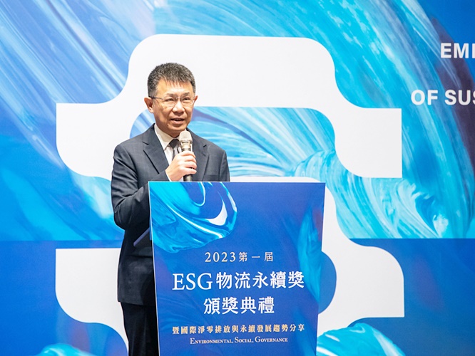 頒獎儀式首先由大會主辦單位--台灣全球商貿運籌發展協會賈凱傑理事長報告「ESG物流永續獎」的緣起,目的在因應趨勢發展,利用獎項以及頒獎儀式,肯定企業推動ESG物流永續的成效。