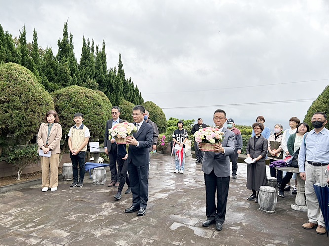 近代史上重要人物王寵惠故董事長,其墓園由其之子王大閎先生所設計,民國103年,台北市政府文化局訂為台北市市定古蹟。潘維大校長憶道,學生時期就常在這兒流連,既清幽又安靜。潘校長強調東吳大學能在台復校,感念王寵惠故董事長為最大的推手,以及石超庸故校長「鞠躬盡瘁」的精神,石故校長以校為家,一生誠信無私、耿直清廉,為實踐東吳校訓「養天地正氣,法古今完人」的典範,在臨終前一刻都還在為東吳大學致力,這無私奉獻的精神令人敬佩。此外,孫科先生是國父孫中山的嫡嗣,在本校復校的過程中擔任董事長,戮力盡心,這幾年經總務處聯繫遺憾得知故董事長伉儷墓園無相關單位維護,孫科故董事長親屬及後人多居海外,不克親自管理墓園,學校為回報故董事長對學校之奉獻與付出,特於今(112)年2月22日接受家屬-孫科董事長的孫子孫國升先生委託,協助本墓園平日之修繕與維護,以盡棉薄之力。最後,潘校長分享在學生時代聽過端木愷校長在升旗典禮中說過的「想一想」故事,故事寓意天下事未能盡如人意,切莫太過執著,多想一想也許就可開創出一個新的境界,深刻影響著潘校長做人處事的態度。