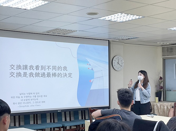 自境管鬆綁後,本校在這學期迎來了超過100位的外籍及大陸來校交換學生。因此,今年國際週特別和語言中心合作,舉辦2場「關於我和外語變成朋友的那件事」分享會,邀請外籍生分享學習外語的經驗、困難與趣事。大部分分享的同學們都表示,要把外語學好,重點在於訂定目標、不怕犯錯並且多加練習。此外,學習外語除了更容易的取得留學、實習機會外,最棒的是透過外語結交了非常多的外國朋友。語言中心劉凱莉主任特地到場共襄盛舉,介紹了語言中心的各類資源和即將登場的英文簡報競賽活動,鼓勵同學們把英文學好,替自己人生履歷加分!