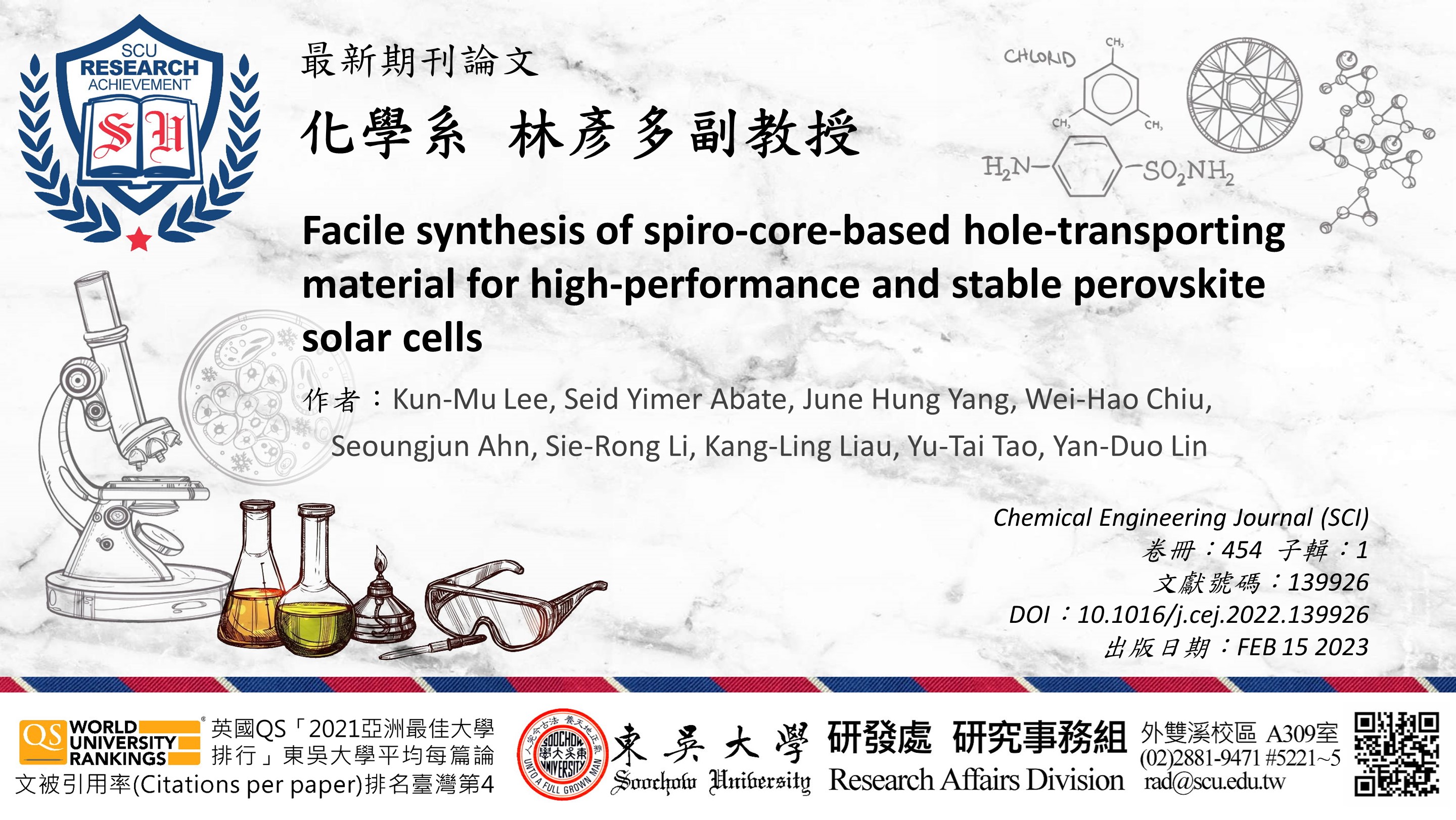 作者:Kun-Mu Lee, Seid Yimer Abate, June Hung Yang, Wei-Hao Chiu, Seoungjun Ahn, Sie-Rong Li, Kang-Ling Liau, Yu-Tai Tao, Yan-Duo Lin