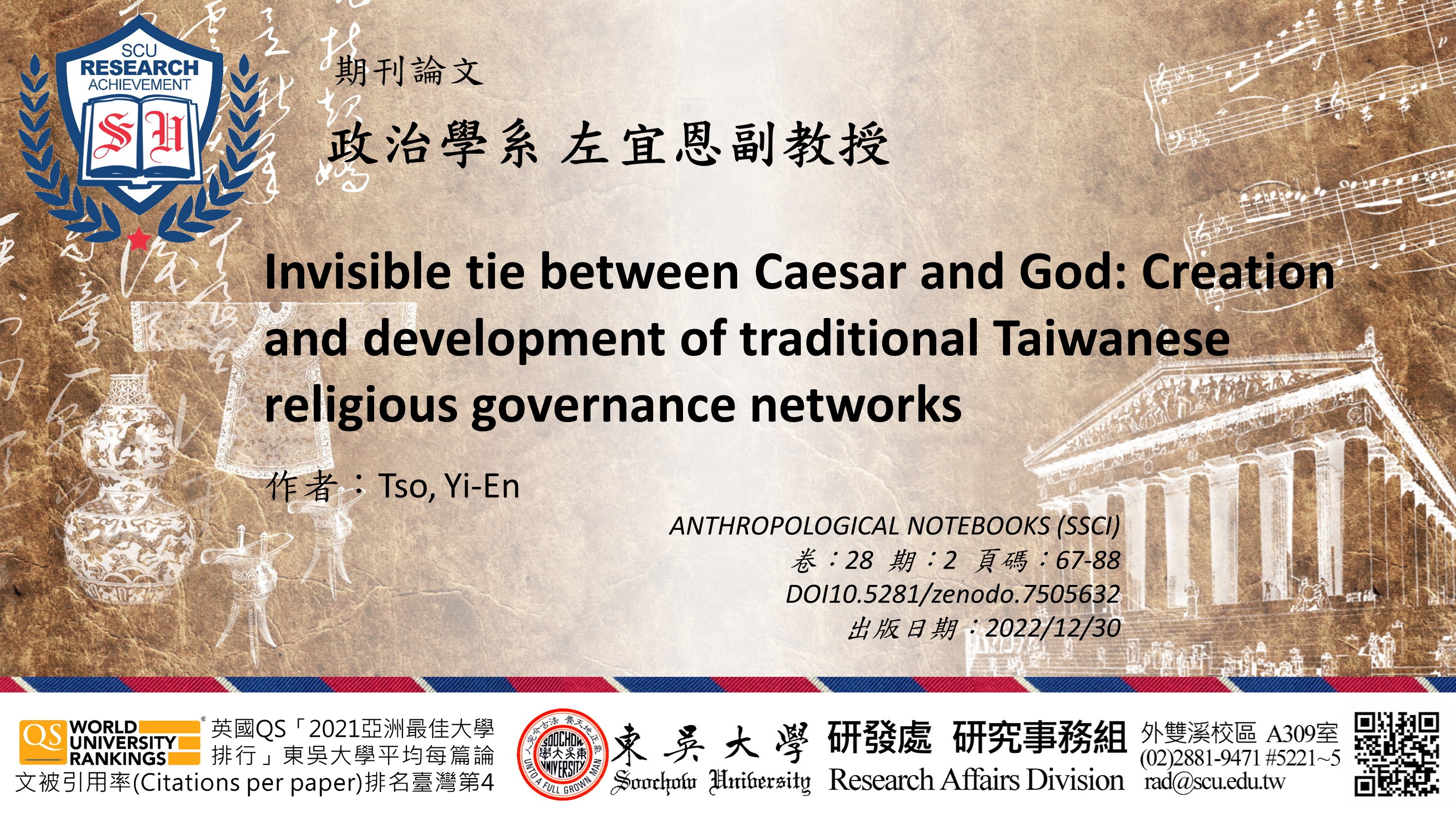 Invisible tie between Caesar and God: Creation and development of traditional Taiwanese religious governance networks